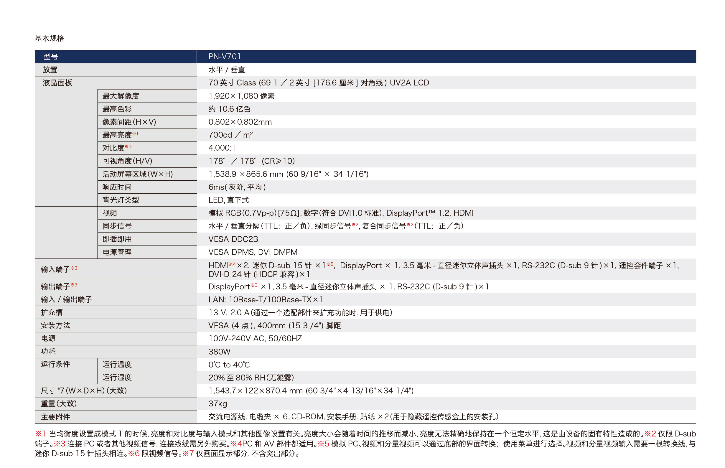 PN-V701 的專業品質適合全天不間斷使用,并能應對嚴苛的操作環境。可用于 7X24小時開放的多種場合