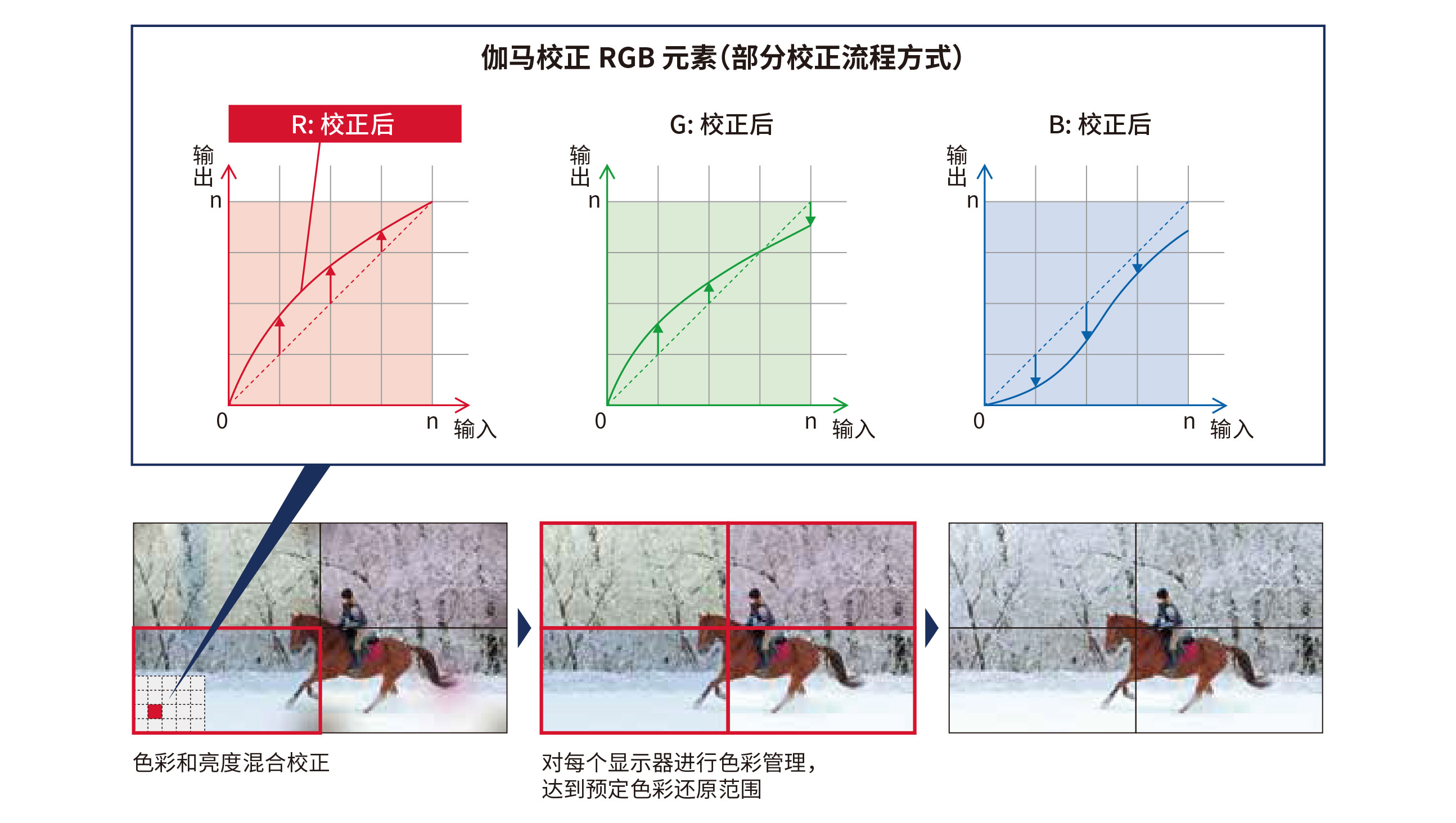 液晶顯示器上每個小區域的顯示性質由RGB輸入信號決定。這項技術能糾正每個RGB信號上色彩和亮度的不一致,請見右圖。應用在 PN-V701上的這項技術是經過夏普改良過的升級技術,提升了準確度
