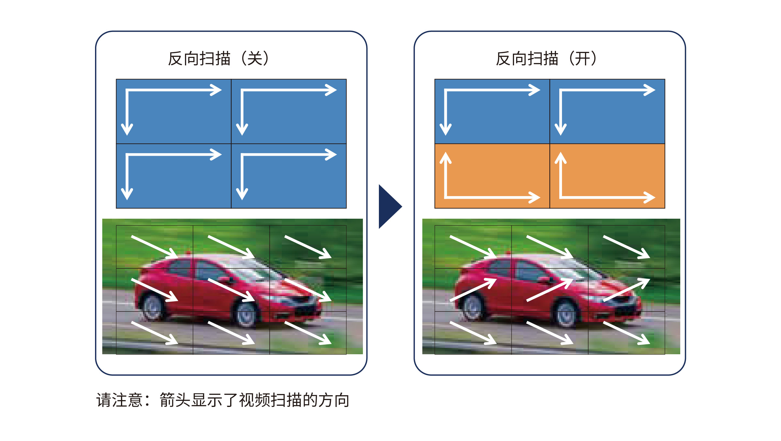 當多個顯示器組成的視頻墻播放高速視頻時,在垂直安裝的顯示器間會發生輕微的畫面偏移。PN-V701擁有反向掃描功能來應對這種情況。通過轉換垂直安裝的顯示器的掃描方向,校正畫面偏移,讓顯示在大型視頻墻上的畫面流暢而自然