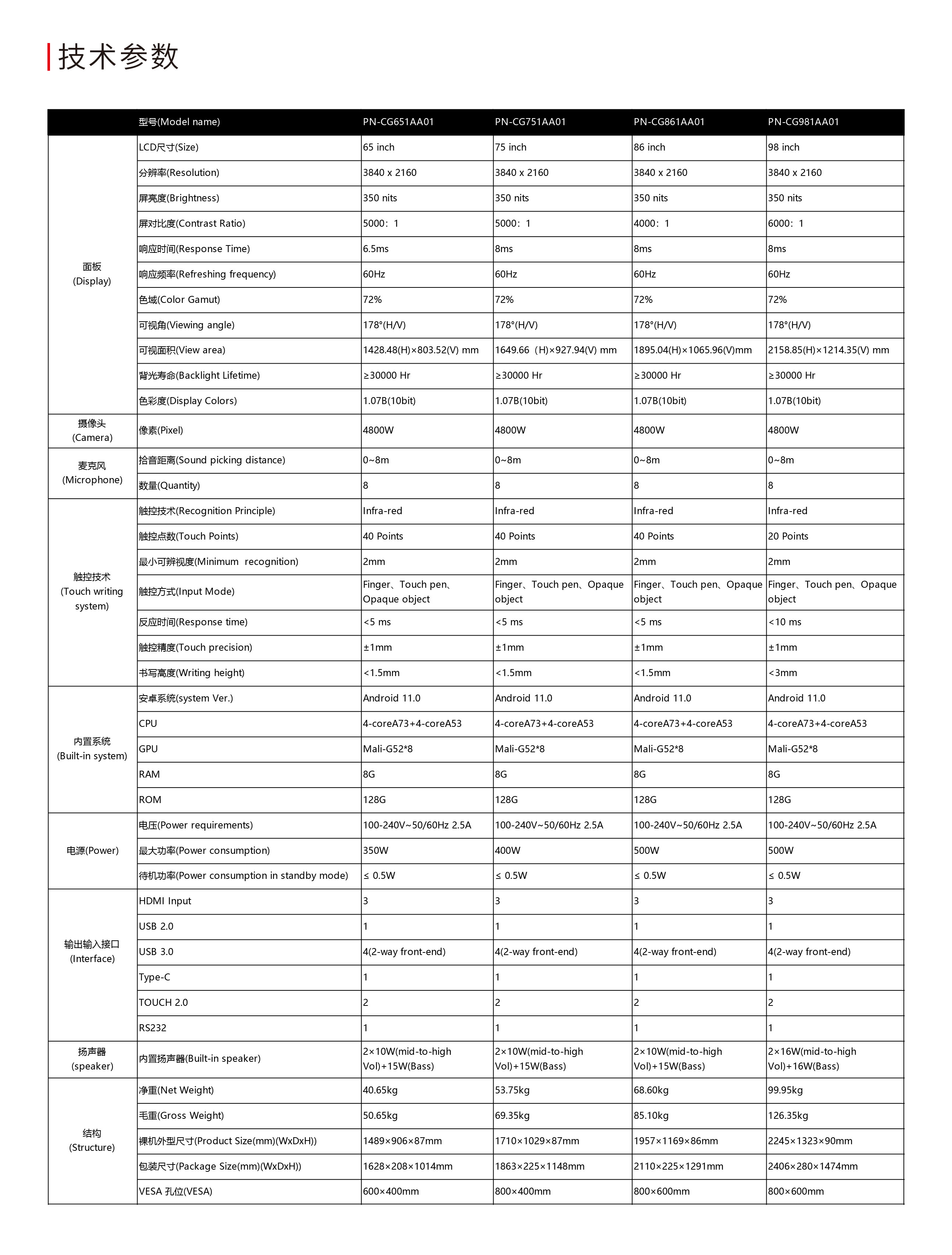 書寫模式:零貼合工藝,低視差書寫,±1mm高精度紅外觸控,40點觸控,支持雙色筆書寫,書寫轉文本,分屏書寫,手勢擦除、放大、縮小、漫游等。隨頁批注:任何界面皆可開啟批注模式,隨時記錄會議重點,并可保存記錄。