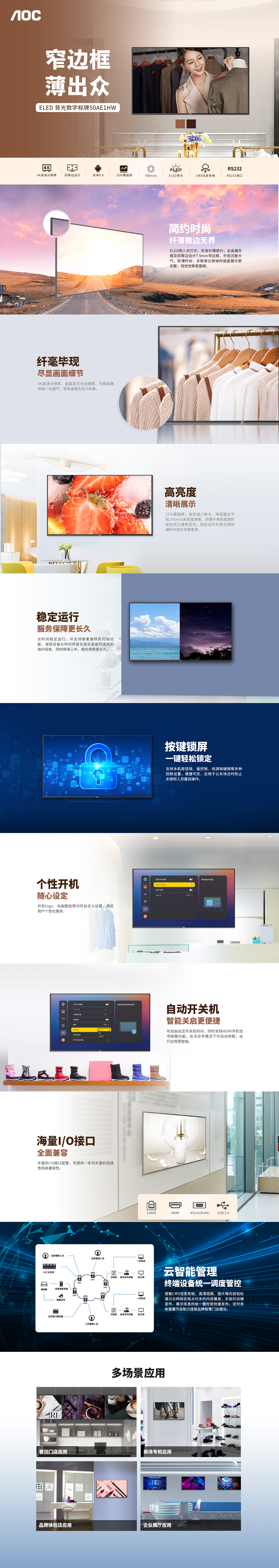 ELED背光數字標牌,霧面高亮度屏幕,吸睛奪目