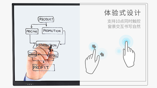 多點觸控,體驗式設計、支持10點同時觸控,實現多人流暢操作、窗景交互書寫自然