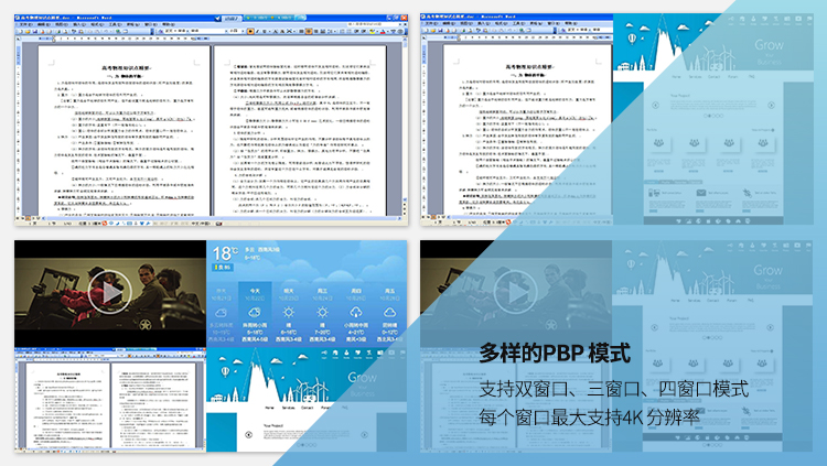支持雙窗口、三窗口、四窗口模式