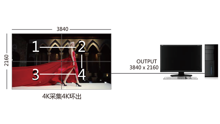 采用最新的 DisplayPort 1.2 和 HDMI1.4 標(biāo)準(zhǔn)數(shù)字 視頻接口,支持每路 4K 信號源采集。在 2x2 視頻墻上可以實(shí)現(xiàn) 4K 物 理分辨率點(diǎn)對點(diǎn)的顯示。