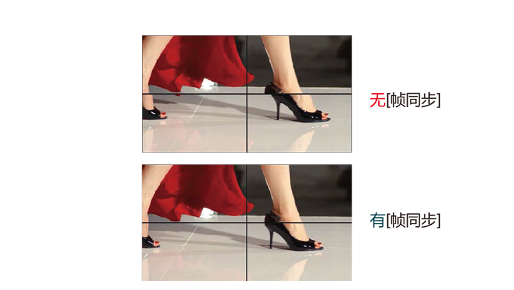 采用 NEC 獨(dú)有的【幀同步】功能保證了拼接墻畫面在高速運(yùn)動(dòng)時(shí),拼 接單元之間畫面的同步性。