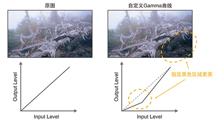 勻拼系列顯示器支持多達(dá)3個(gè)自定義Gamma模式,用戶可以根據(jù)實(shí) 際使用情況設(shè)置 3 個(gè)不同的 Gamma 曲線,為不同行業(yè)不同客戶提供 了更靈活多變的色彩解決方案。